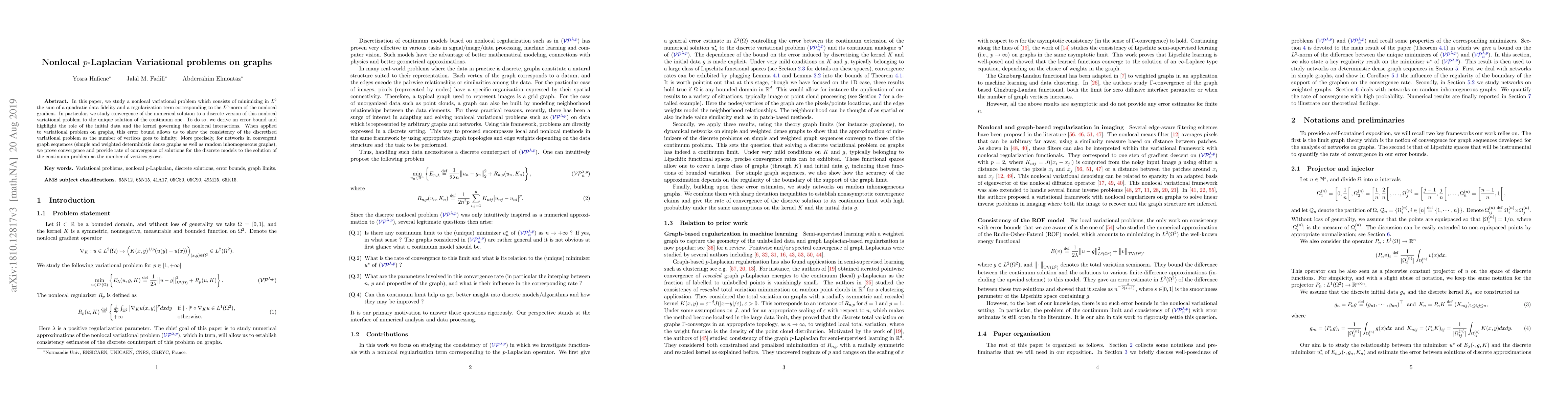 This paper investigates a nonlocal variational problem on graphs, focusing on minimizing an $L^2$ sum of data fidelity and a regularization term. It provides a convergence analysis for numerical solutions to the continuum problem, deriving an error bound and demonstrating consistency as the number of vertices increases.