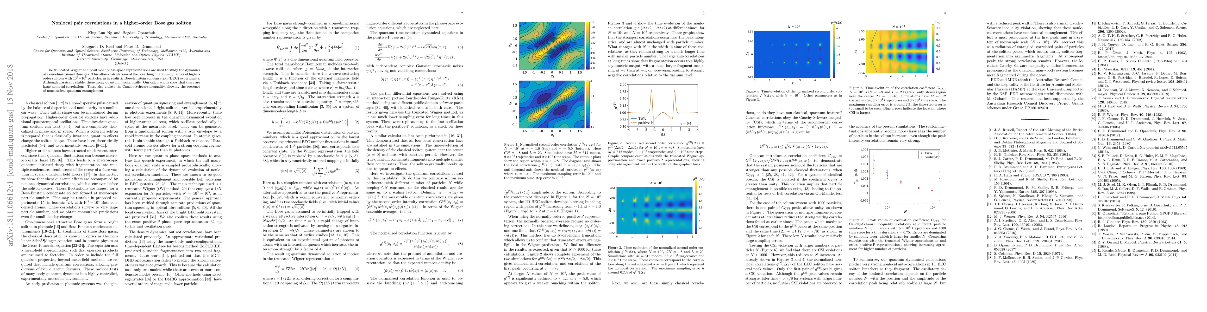 This research uses phase-space representations to study one-dimensional Bose gas solitons with 10^3-10^5 particles, similar to BEC experiments. It finds significant nonlocal correlations violating classical expectations, indicating quantum entanglement.