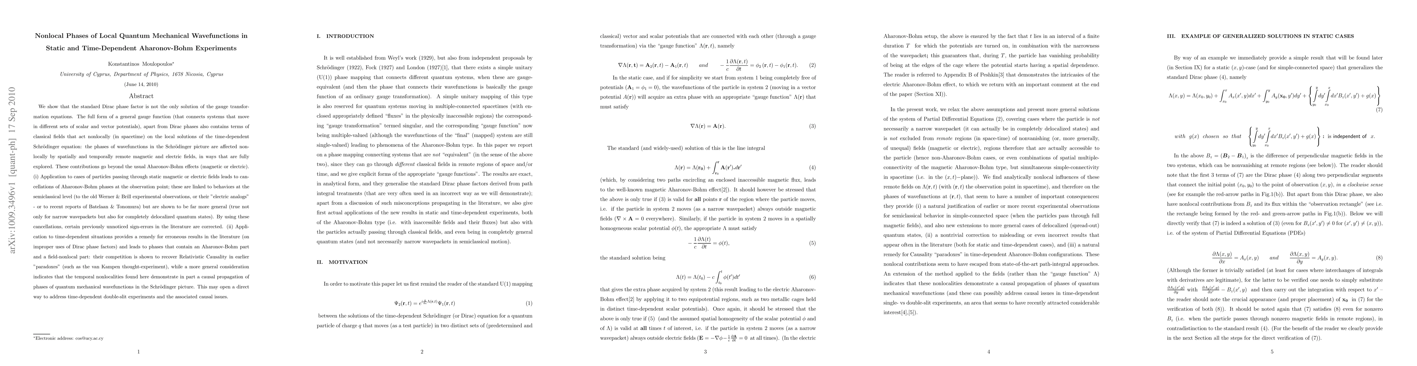 We show that the standard Dirac phase factor is not the only solution of the gauge transformation equations. The full form of a general gauge function (that connects systems that move in different sets of scalar and vector potentials), apart from Dirac phases also contains terms of classical fields that act nonlocally (in spacetime) on the local solutions of the time-dependent Schr\"odinger equation: the phases of wavefunctions in the Schr\"odinger picture are affected nonlocally by spatially and temporally remote magnetic and electric fields, in ways that are fully explored. These contributions go beyond the usual Aharonov-Bohm effects (magnetic or electric). (i) Application to cases of particles passing through static magnetic or electric fields leads to cancellations of Aharonov-Bohm phases at the observation point; these are linked to behaviors at the semiclassical level (to the old Werner & Brill experimental observations, or their "electric analogs" - or to recent reports of Batelaan & Tonomura) but are shown to be far more general (true not only for narrow wavepackets but also for completely delocalized quantum states). By using these cancellations, certain previously unnoticed sign-errors in the literature are corrected. (ii) Application to time-dependent situations provides a remedy for erroneous results in the literature (on improper uses of Dirac phase factors) and leads to phases that contain an Aharonov-Bohm part and a field-nonlocal part: their competition is shown to recover Relativistic Causality in earlier "paradoxes" (such as the van Kampen thought-experiment), while a more general consideration indicates that the temporal nonlocalities found here demonstrate in part a causal propagation of phases of quantum mechanical wavefunctions in the Schr\"odinger picture. This may open a direct way to address time-dependent double-slit experiments and the associated causal issues