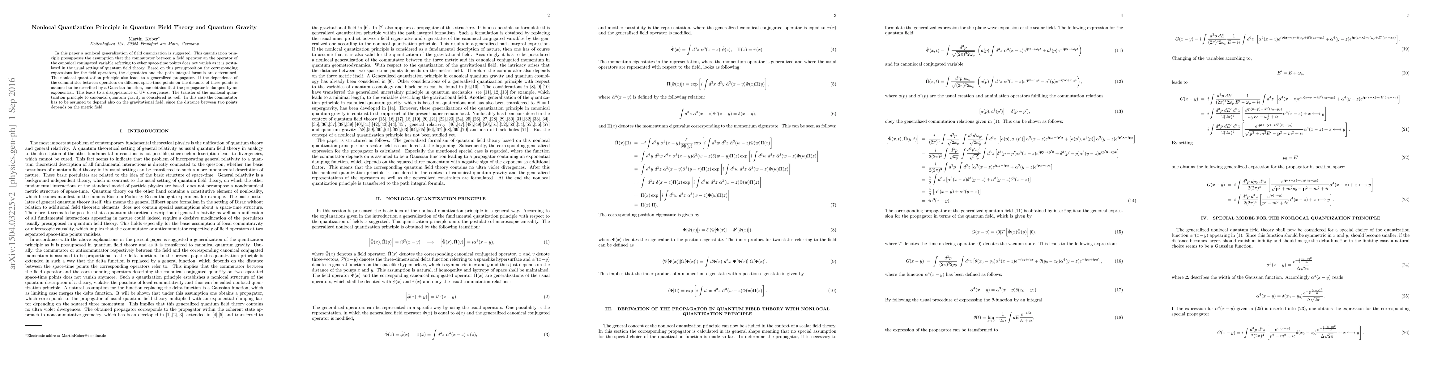 This paper proposes a nonlocal quantization principle in quantum field theory, suggesting that the commutator between field operators at different space-time points does not vanish, leading to a generalized propagator and a damped exponential function that eliminates UV divergences. The principle is also extended to quantum gravity, where the gravitational field influences the commutator.