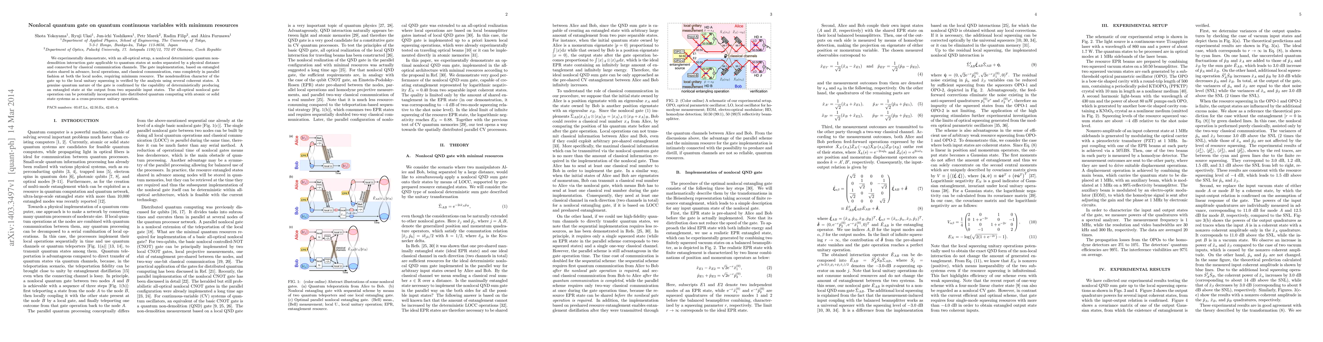 We experimentally demonstrate, with an all-optical setup, a nonlocal deterministic quantum non-demolition interaction gate applicable to quantum states at nodes separated by a physical distance and connected by classical communication channels. The gate implementation, based on entangled states shared in advance, local operations, and classical communication, runs completely in parallel fashion at both the local nodes, requiring minimum resource. The nondemolition character of the gate up to the local unitary squeezing is verified by the analysis using several coherent states. A genuine quantum nature of the gate is confirmed by the capability of deterministically producing an entangled state at the output from two separable input states. The all-optical nonlocal gate operation can be potentially incorporated into distributed quantum computing with atomic or solid state systems as a cross-processor unitary operation.