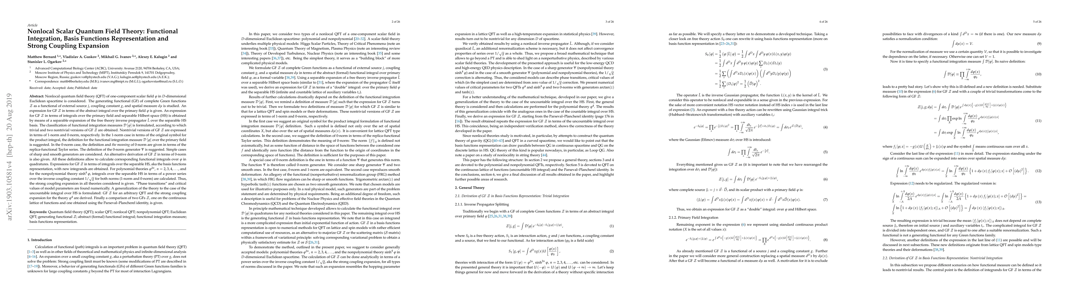 Nonlocal QFT of one-component scalar field $\varphi$ in $D$-dimensional Euclidean spacetime is considered. The generating functional (GF) of complete Green functions $\mathcal{Z}$ as a functional of external source $j$, coupling constant $g$, and spatial measure $d\mu$ is studied. An expression for GF $\mathcal{Z}$ in terms of the abstract integral over the primary field $\varphi$ is given. An expression for GF $\mathcal{Z}$ in terms of integrals over the primary field and separable Hilbert space (HS) is obtained by means of a separable expansion of the free theory inverse propagator $\hat{L}$ over the separable HS basis. The classification of functional integration measures $\mathcal{D}\left[\varphi\right]$ is formulated, according to which trivial and two nontrivial versions of GF $\mathcal{Z}$ are obtained. Nontrivial versions of GF $\mathcal{Z}$ are expressed in terms of $1$-norm and $0$-norm, respectively. The definition of the $0$-norm generator $\varPsi$ is suggested. Simple cases of sharp and smooth generators are considered. Expressions for GF $\mathcal{Z}$ in terms of integrals over the separable HS with new integrands are obtained. For polynomial theories $\varphi^{2n},\, n=2,3,4,\ldots,$ and for the nonpolynomial theory $\sinh^{4}\varphi$, integrals over the separable HS in terms of a power series over the inverse coupling constant $1/\sqrt{g}$ for both norms ($1$-norm and $0$-norm) are calculated. Critical values of model parameters when a phase transition occurs are found numerically. A generalization of the theory to the case of the uncountable integral over HS is formulated. A comparison of two GFs $\mathcal{Z}$, one in the case of uncountable HS integral and one obtained using the Parseval-Plancherel identity, is given.