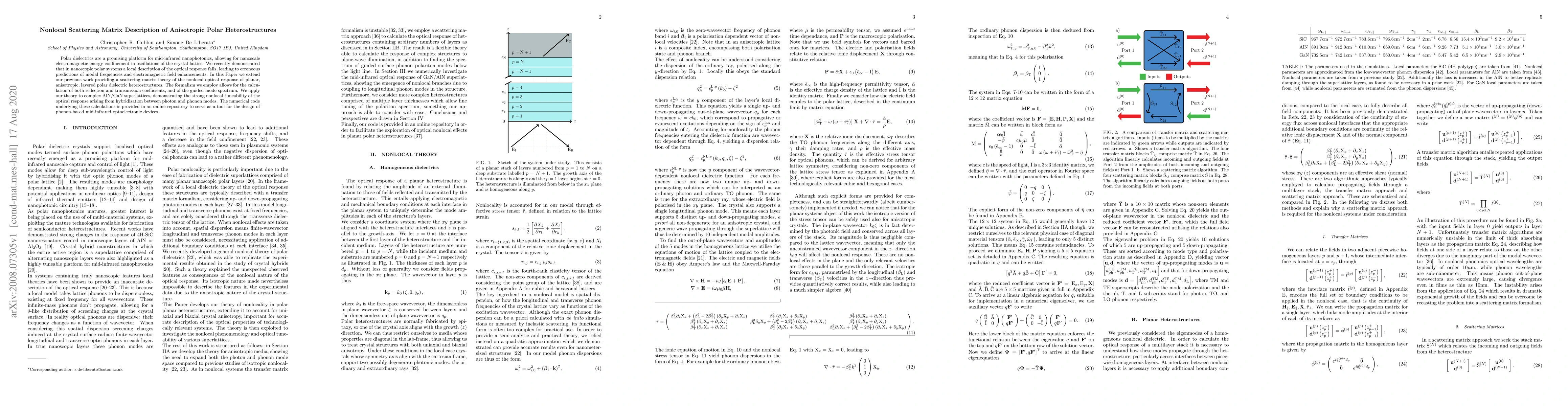 This paper proposes a nonlocal scattering matrix theory for anisotropic polar heterostructures, addressing the limitations of local optical response descriptions. It calculates reflection, transmission coefficients, and guided mode spectra for AlN/GaN superlattices, highlighting the nonlocal tunable optical response due to photon-phonon hybridization.