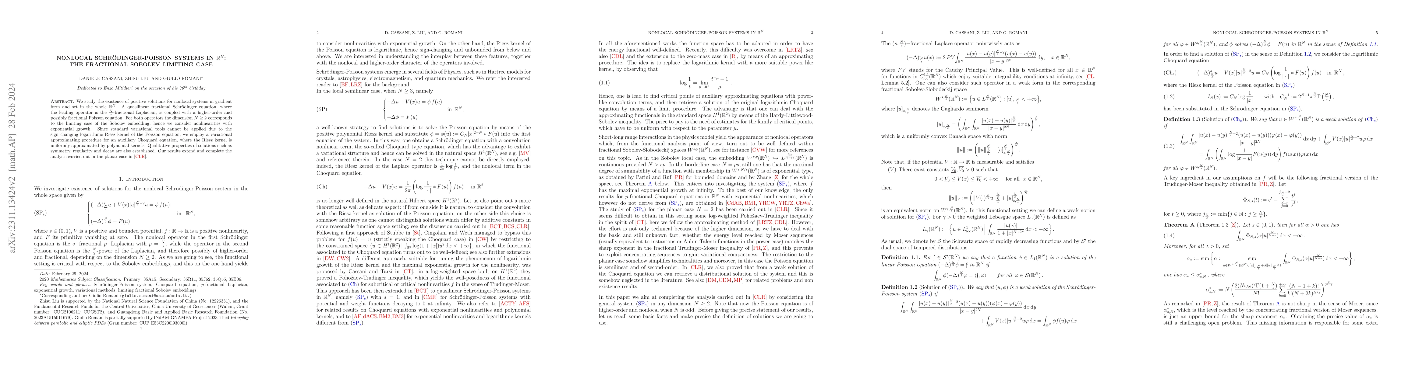 This paper investigates the existence of positive solutions for nonlocal gradient systems in $\mathbb R^N$, focusing on a quasilinear fractional Schrödinger equation coupled with a higher-order Poisson equation. It employs variational approximation methods to address the challenges posed by the non-standard Riesz kernel, establishing qualitative properties like symmetry, regularity, and decay of solutions.