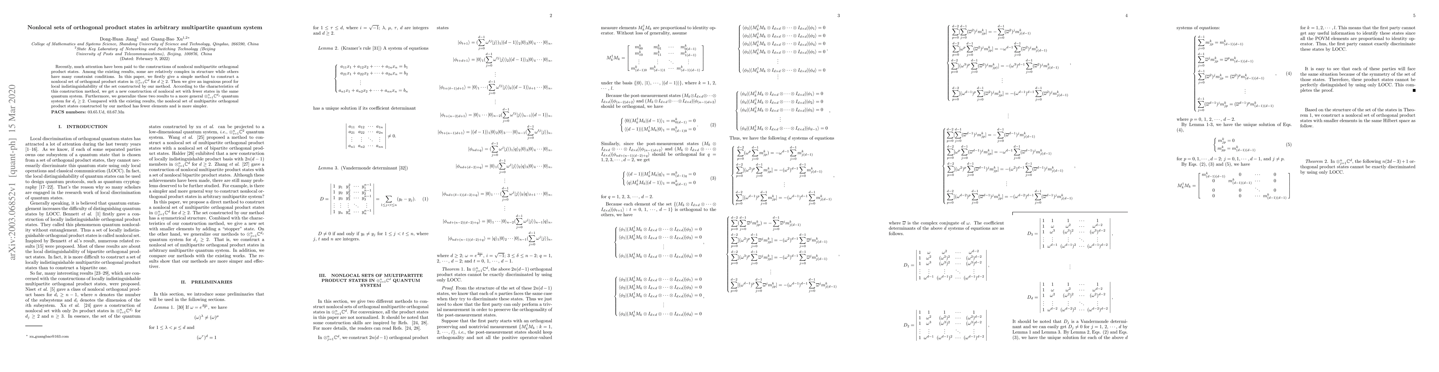 The paper introduces a simplified method for constructing nonlocal sets of orthogonal product states and proves their local indistinguishability, extending the results to more general multipartite quantum systems.