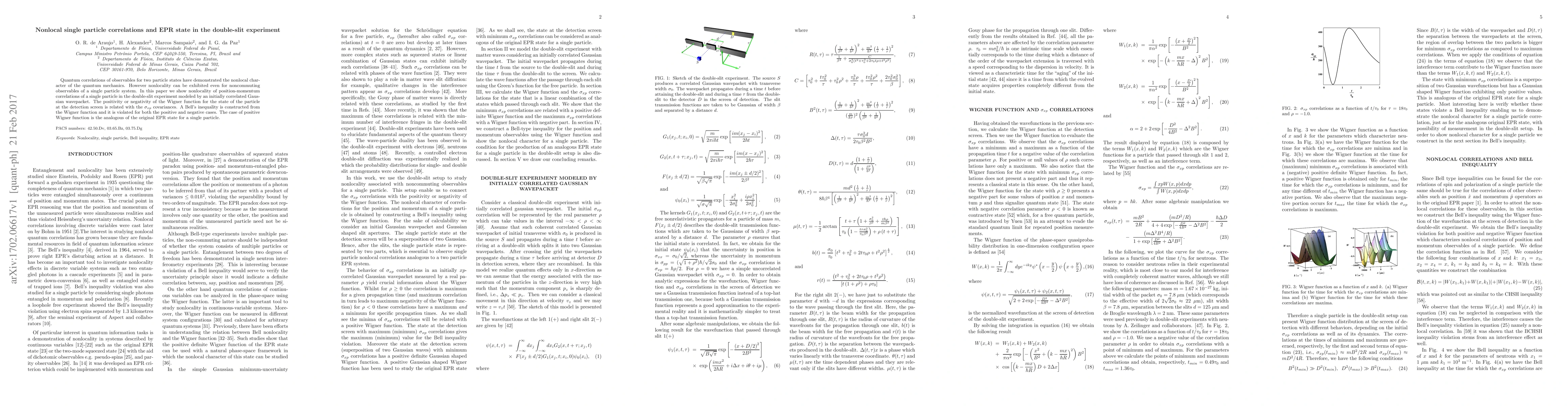 This paper demonstrates nonlocal single particle correlations in the double-slit experiment using a Gaussian wavepacket model. It constructs a Bell's inequality from the Wigner function, showing its violation, which parallels the nonlocality seen in the original EPR state for a single particle.