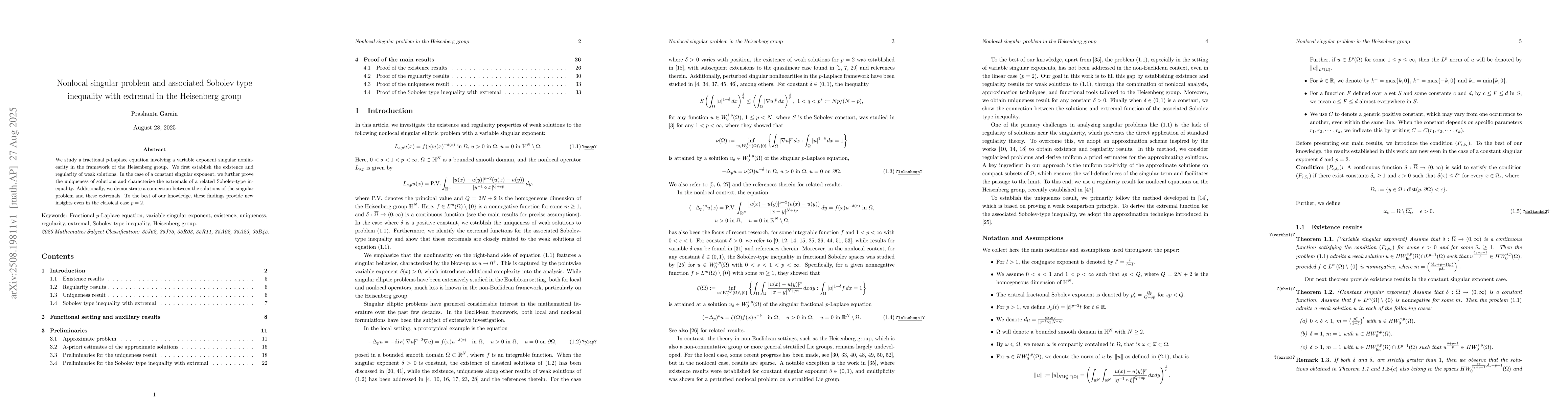 We study a fractional $p$-Laplace equation involving a variable exponent singular nonlinearity in the framework of the Heisenberg group. We first establish the existence and regularity of weak solutions. In the case of a constant singular exponent, we further prove the uniqueness of solutions and characterize the extremals of a related Sobolev-type inequality. Additionally, we demonstrate a connection between the solutions of the singular problem and these extremals. To the best of our knowledge, these findings provide new insights even in the classical case $p=2$.