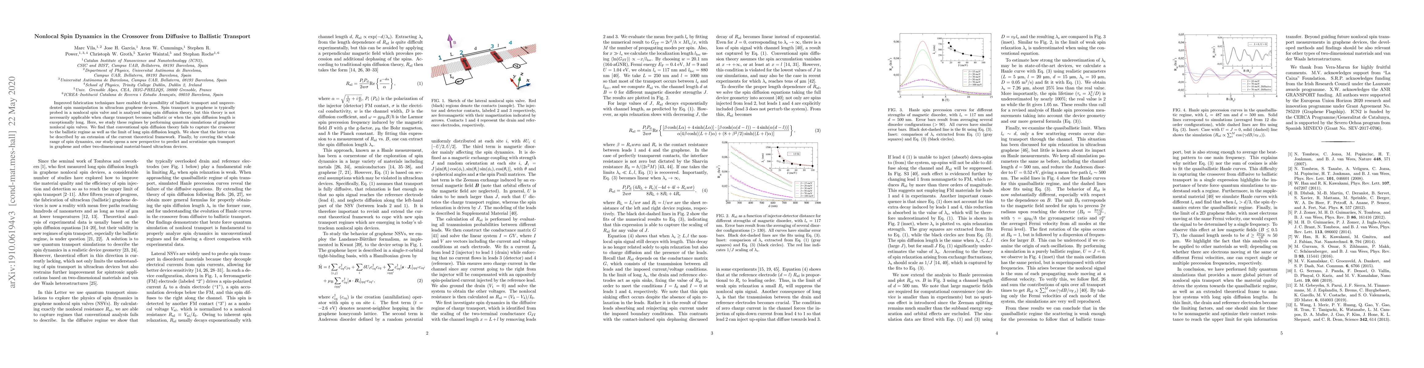 This paper investigates the transition from diffusive to ballistic spin transport in ultraclean graphene devices using quantum simulations. It reveals that conventional spin diffusion theory is insufficient for describing this crossover, proposing an extended framework to better capture long spin diffusion lengths.