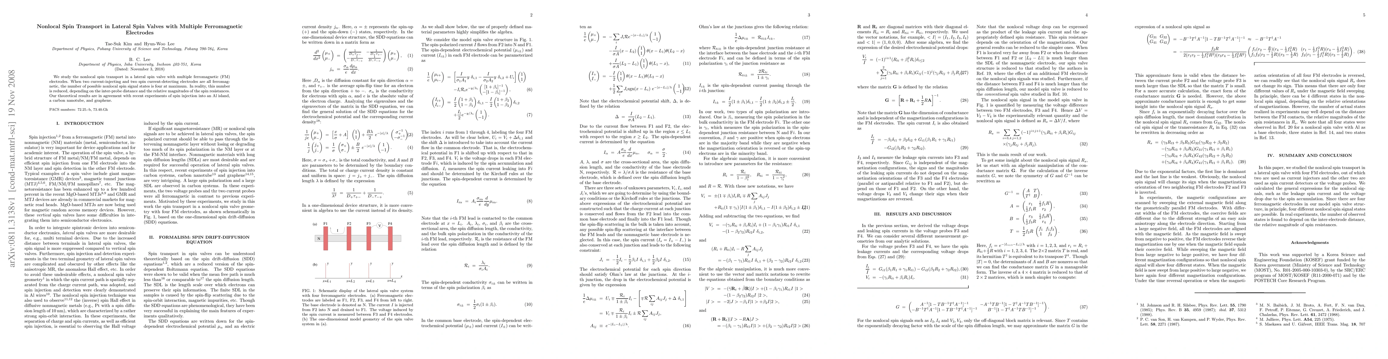 This paper investigates nonlocal spin transport in lateral spin valves featuring multiple ferromagnetic electrodes, revealing that the maximum number of nonlocal spin signal states is four, though this number is influenced by inter-probe distance and spin resistance magnitudes. The theoretical findings align with experimental results involving spin injection into Al islands, carbon nanotubes, and graphene.