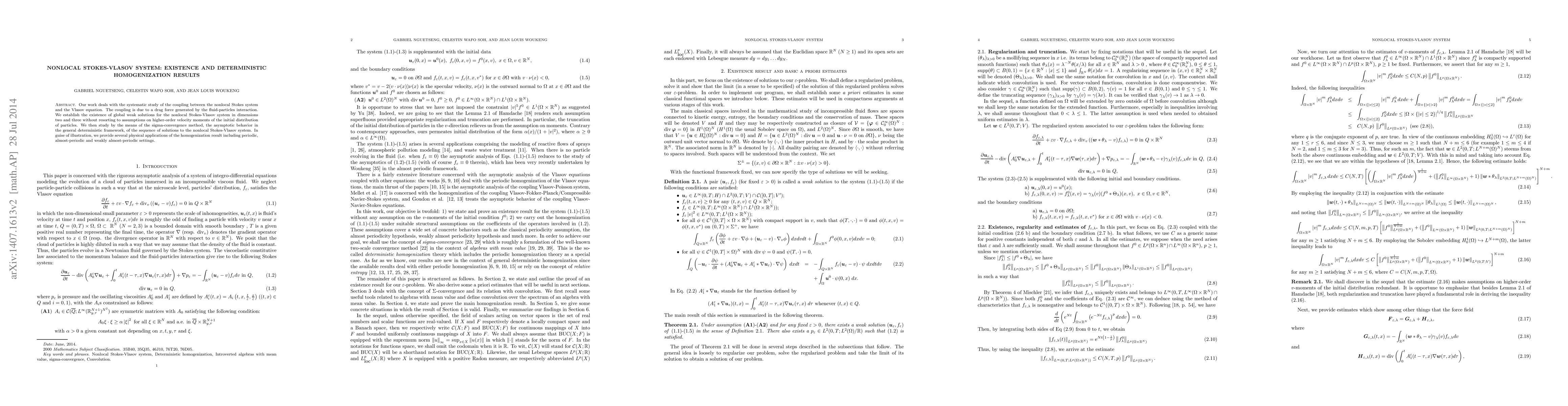 Researchers establish existence of global weak solutions for a nonlocal Stokes-Vlasov system in dimensions 2 and 3 without assumptions on higher-order velocity moments. They also study asymptotic behavior using the sigma-convergence method with implications for physical applications.