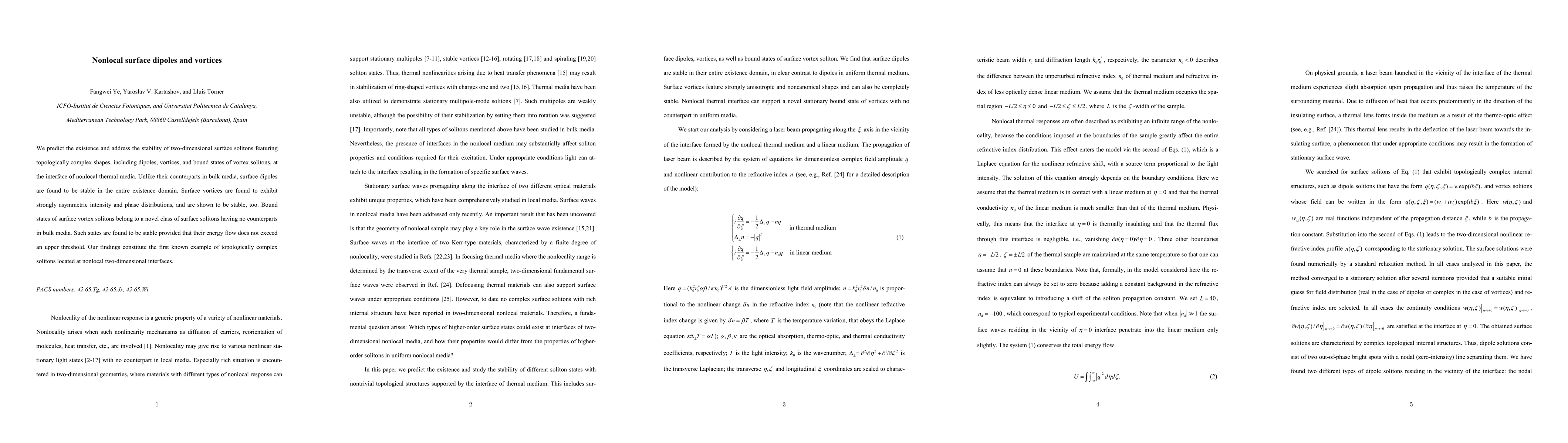 We predict the existence and address the stability of two-dimensional surface solitons featuring topologically complex shapes, including dipoles, vortices, and bound states of vortex solitons, at the interface of nonlocal thermal media. Unlike their counterparts in bulk media, surface dipoles are found to be stable in the entire existence domain. Surface vortices are found to exhibit strongly asymmetric intensity and phase distributions, and are shown to be stable, too. Bound states of surface vortex solitons belong to a novel class of surface solitons having no counterparts in bulk media. Such states are found to be stable provided that their energy flow does not exceed an upper threshold. Our findings constitute the first known example of topologically complex solitons located at nonlocal two-dimensional interfaces.