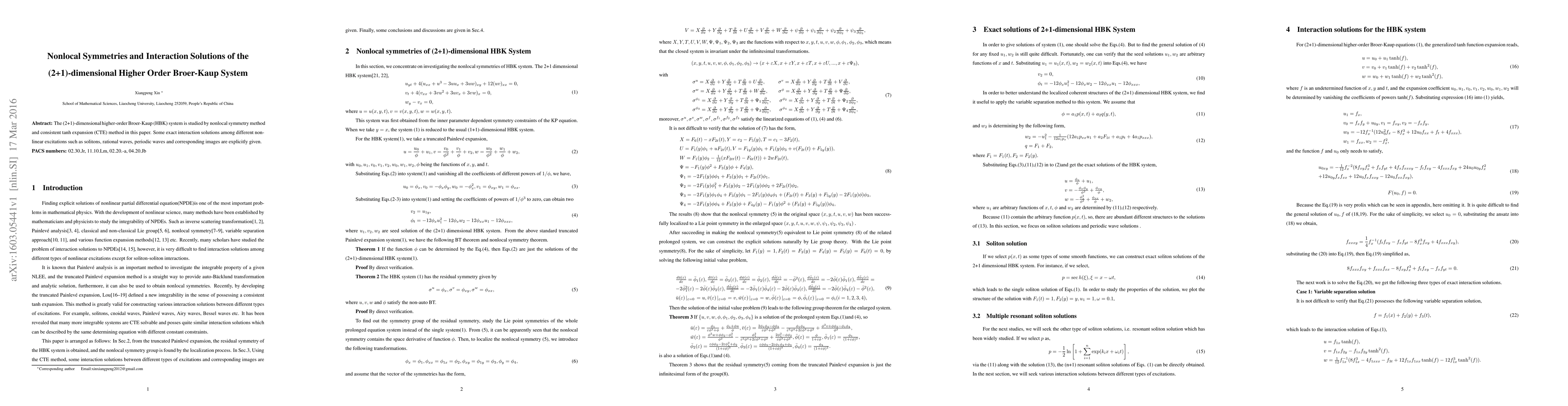 This paper uses nonlocal symmetry method to find exact interaction solutions for a higher-order Broer-Kaup system in 2+1 dimensions, including solitons, rational waves, and periodic waves.