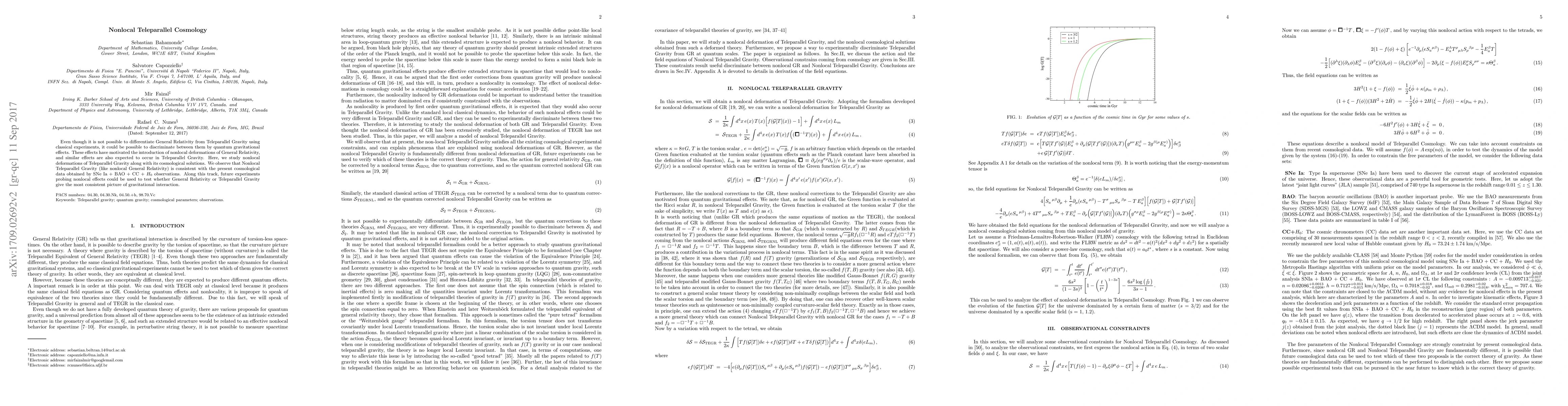 This paper explores nonlocal deformations of Teleparallel Gravity and its cosmological implications, finding consistency with current observational data. Future experiments probing nonlocal effects may help distinguish between Teleparallel Gravity and General Relativity.
