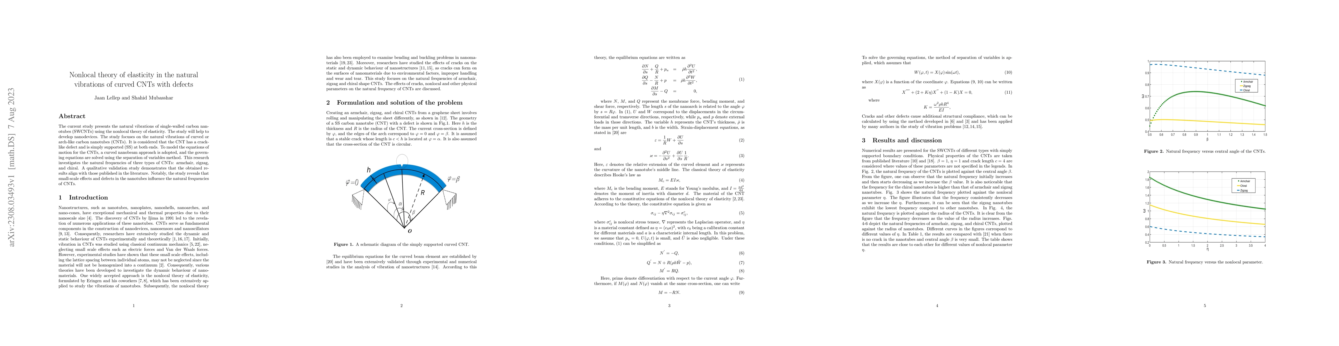 This research explores the natural vibrations of curved single-walled carbon nanotubes (SWCNTs) with defects using nonlocal elasticity theory, employing a curved nanobeam model and solving equations via separation of variables. It reveals that small-scale effects and defects significantly impact the natural frequencies of armchair, zigzag, and chiral CNTs.