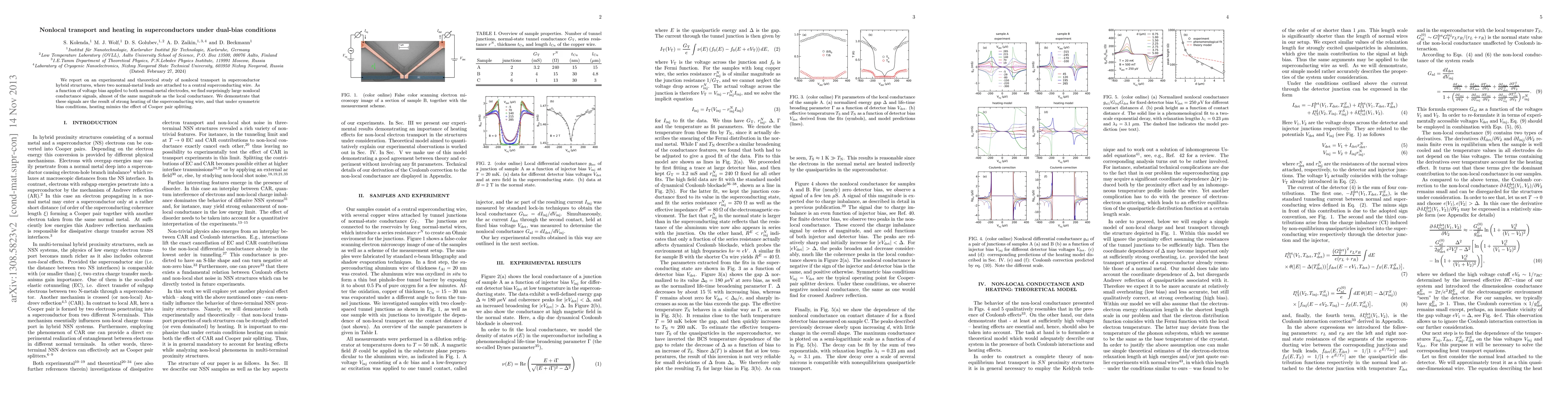 We report on an experimental and theoretical study of nonlocal transport in superconductor hybrid structures, where two normal-metal leads are attached to a central superconducting wire. As a function of voltage bias applied to both normal-metal electrodes, we find surprisingly large nonlocal conductance signals, almost of the same magnitude as the local conductance. We demonstrate that these signals are the result of strong heating of the superconducting wire, and that under symmetric bias conditions, heating mimics the effect of Cooper pair splitting.