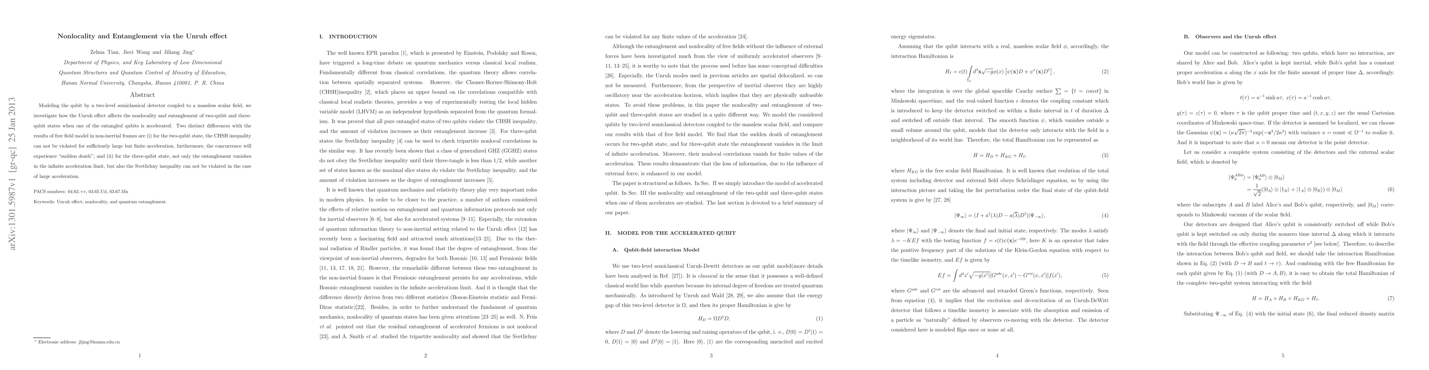 Modeling the qubit by a two-level semiclassical detector coupled to a massless scalar field, we investigate how the Unruh effect affects the nonlocality and entanglement of two-qubit and three-qubit states when one of the entangled qubits is accelerated. Two distinct differences with the results of free field model in non-inertial frames are (i) for the two-qubit state, the CHSH inequality can not be violated for sufficiently large but finite acceleration, furthermore, the concurrence will experience "sudden death"; and (ii) for the three-qubit state, not only the entanglement vanishes in the infinite acceleration limit, but also the Svetlichny inequality can not be violated in the case of large acceleration.