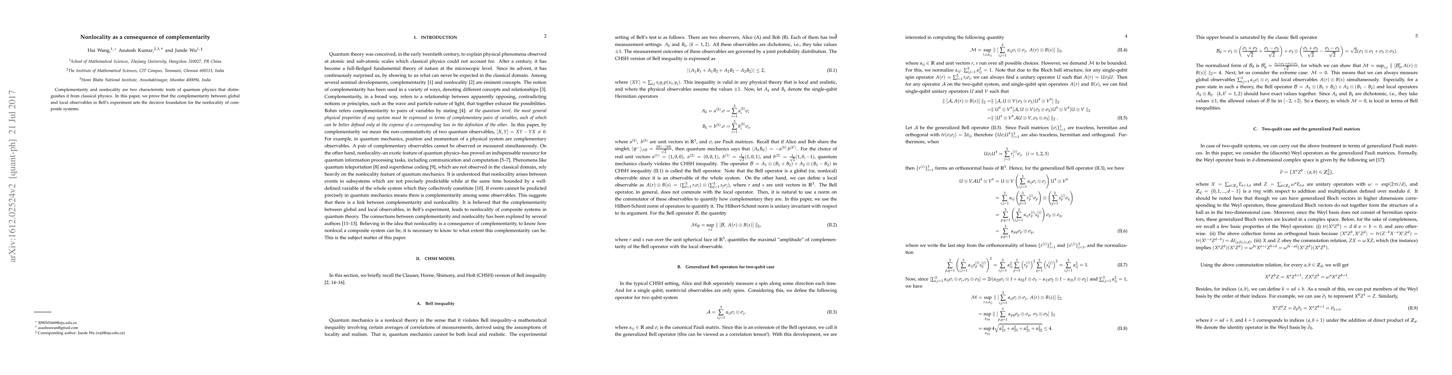 This paper demonstrates that the principle of complementarity underpins the nonlocality observed in quantum systems, particularly in Bell's experiments, highlighting the intrinsic link between these two quantum phenomena.