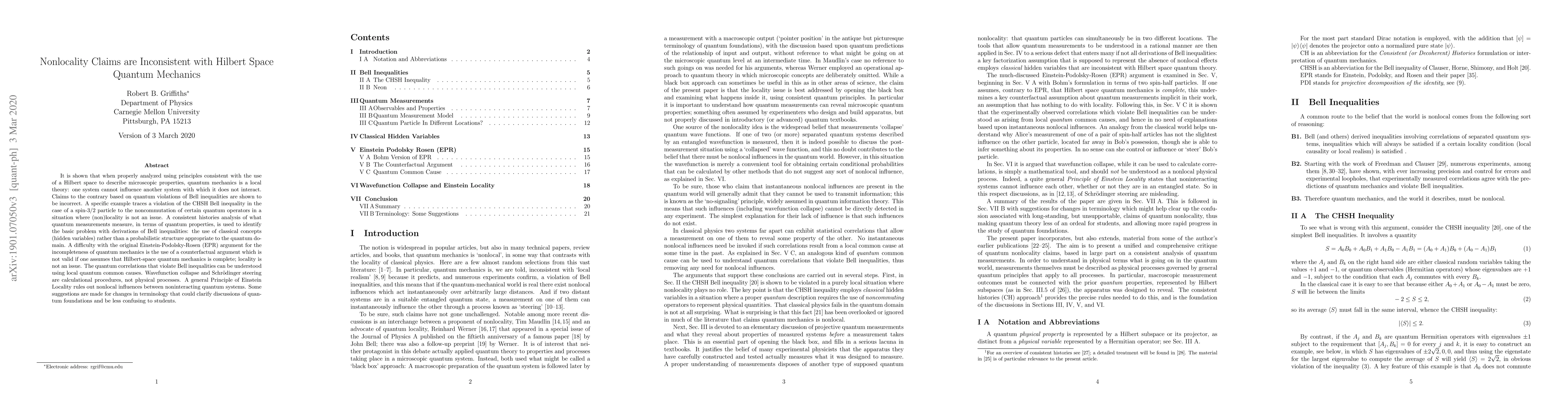 This paper argues that quantum mechanics, when analyzed within the framework of Hilbert space, is inherently a local theory, refuting claims of nonlocality based on Bell inequality violations. It demonstrates that apparent violations arise from incorrect classical interpretations rather than true quantum nonlocality.