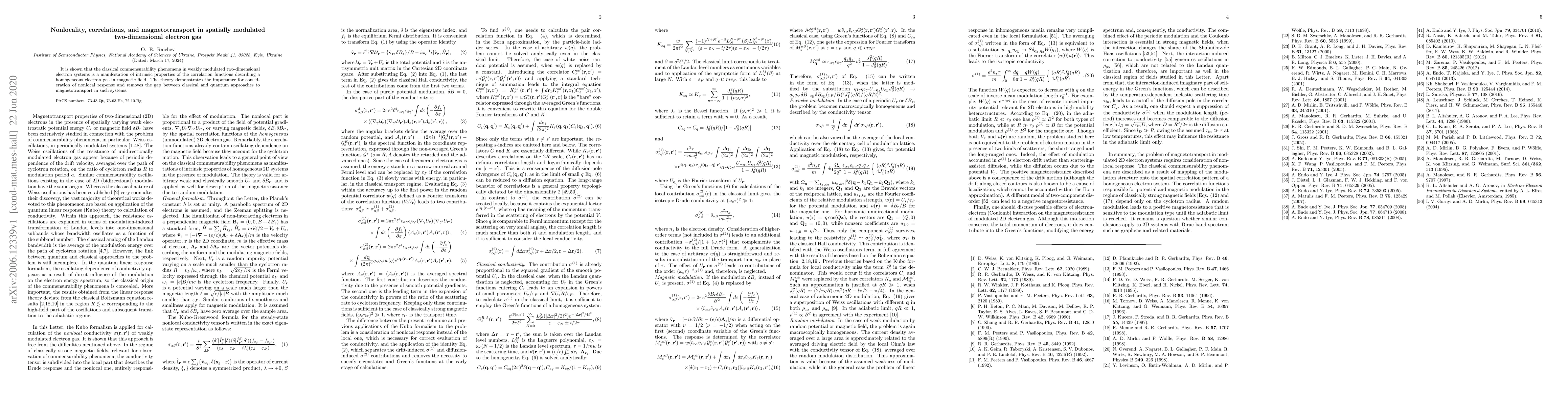 Summary: This research reveals that classical commensurability in weakly modulated two-dimensional electron systems stems from intrinsic correlation properties in a magnetic field, emphasizing the significance of nonlocal response and bridging classical and quantum magnetotransport theories.
