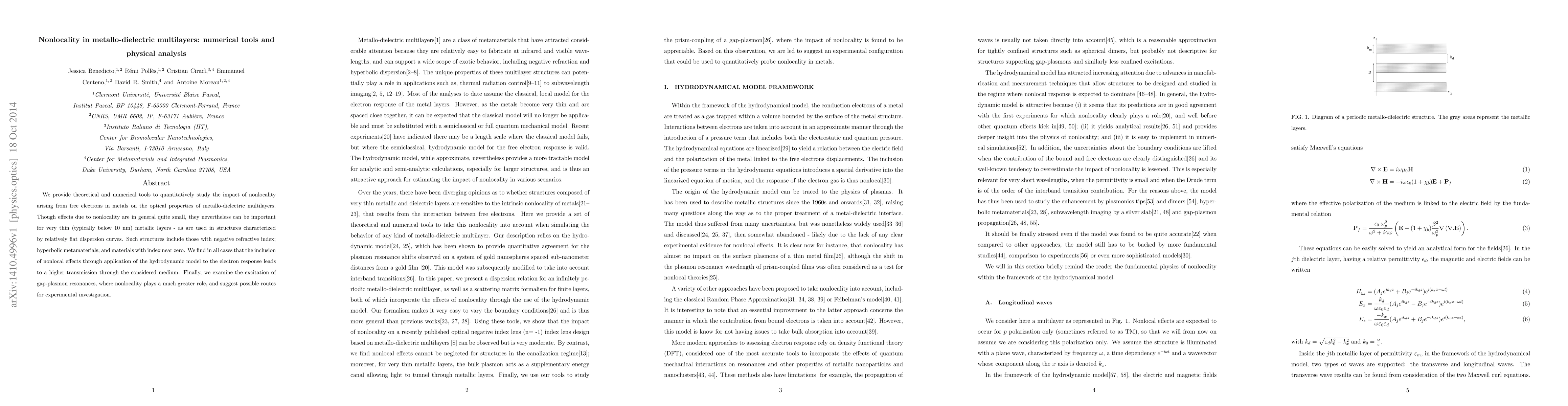 This paper develops theoretical and numerical methods to analyze the optical properties of metallo-dielectric multilayers, focusing on the nonlocal effects from free electrons in metals. It finds that nonlocality enhances transmission and plays a significant role in gap-plasmon resonances, suggesting avenues for experimental exploration.