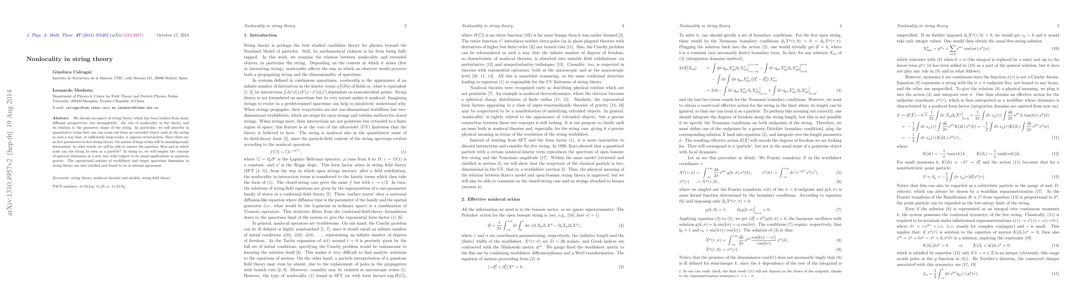 This paper explores the role of nonlocality in string theory and its connection to the geometric shape of strings, demonstrating how strings appear structureless at large scales. It employs the concept of spectral dimension to address how and at what scale strings can be perceived as particles, clarifying the relationship between worldsheet and target spacetime dimensions.