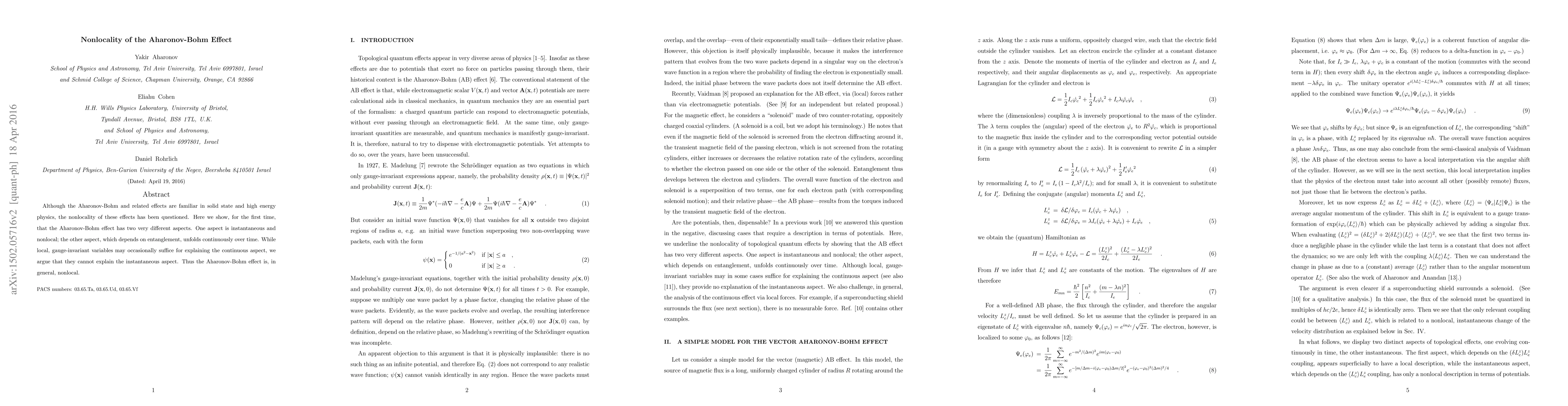 Although the Aharonov-Bohm and related effects are familiar in solid state and high energy physics, the nonlocality of these effects has been questioned. Here we show, for the first time, that the Aharonov-Bohm effect has two very different aspects. One aspect is instantaneous and nonlocal; the other aspect, which depends on entanglement, unfolds continuously over time. While local, gauge-invariant variables may occasionally suffice for explaining the continuous aspect, we argue that they cannot explain the instantaneous aspect. Thus the Aharonov-Bohm effect is, in general, nonlocal.