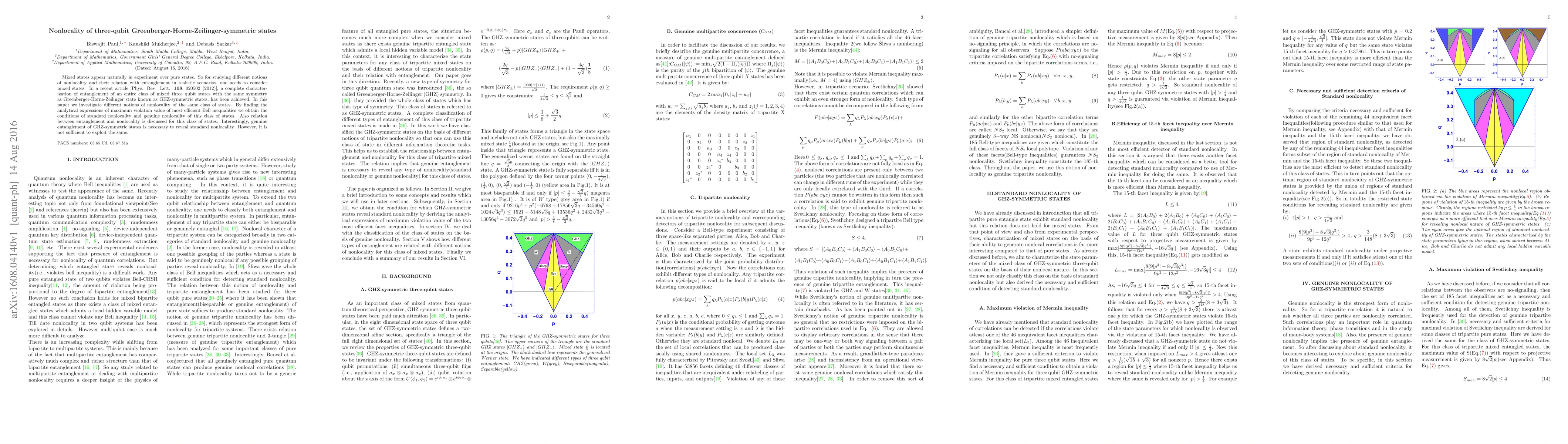 This paper investigates the nonlocality of mixed three-qubit GHZ-symmetric states, finding analytical expressions for maximum Bell inequality violations and establishing conditions for standard and genuine nonlocality. It concludes that while genuine entanglement is necessary for standard nonlocality, it is not sufficient to exploit it.