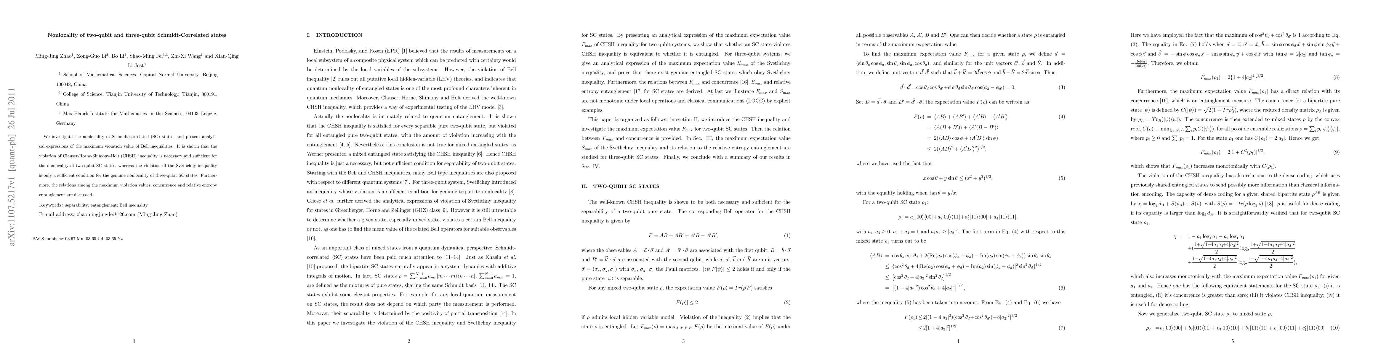 This paper examines the nonlocality of Schmidt-correlated states in two-qubit and three-qubit systems, providing analytical expressions for maximum Bell inequality violations. It concludes that CHSH inequality violation is both necessary and sufficient for two-qubit SC states' nonlocality, while Svetlichny inequality violation is only sufficient for genuine nonlocality in three-qubit SC states.