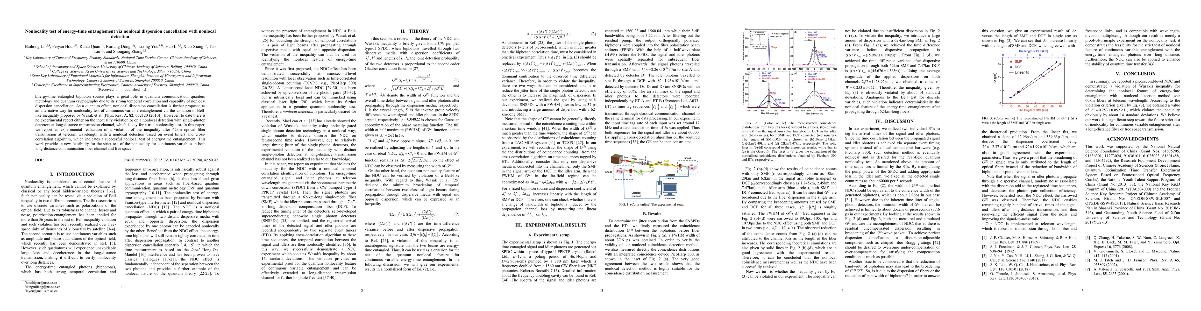 This paper reports an experimental violation of a Bell-like inequality after 62km optical fiber transmission, demonstrating nonlocal dispersion cancellation in energy-time entangled biphotons. The use of nonlocal detection with single-photon detectors and event timers confirms a successful nonlocality test of energy-time entanglement, offering new feasibility for long-distance quantum communication.