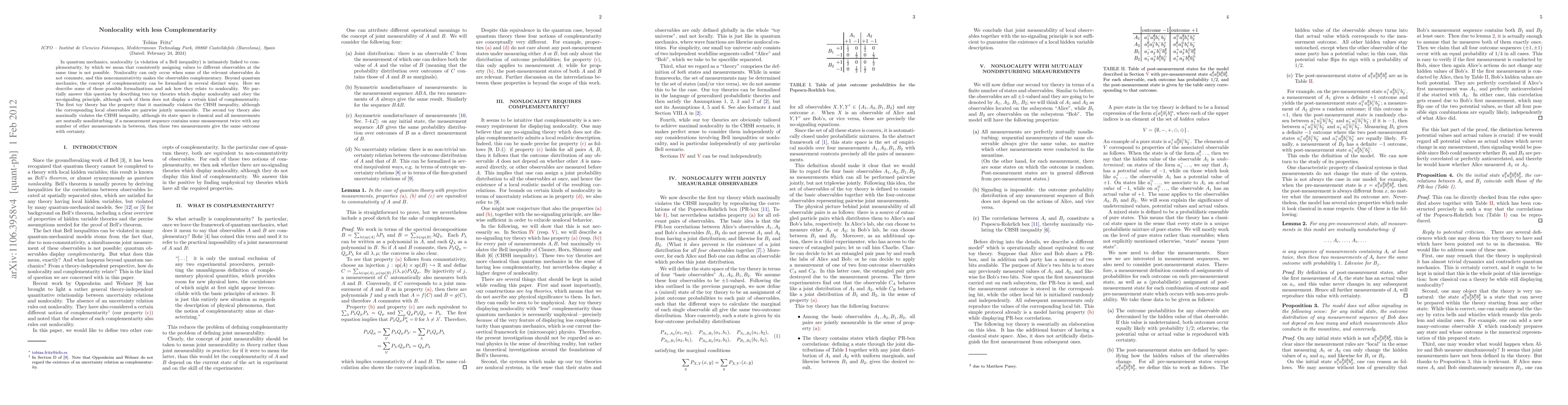 This paper explores the relationship between nonlocality and complementarity in quantum mechanics, proposing that nonlocality can exist without the traditional notion of complementarity. It introduces two toy theories that violate the CHSH inequality, demonstrating nonlocality while defying specific forms of complementarity, thus challenging conventional interpretations.