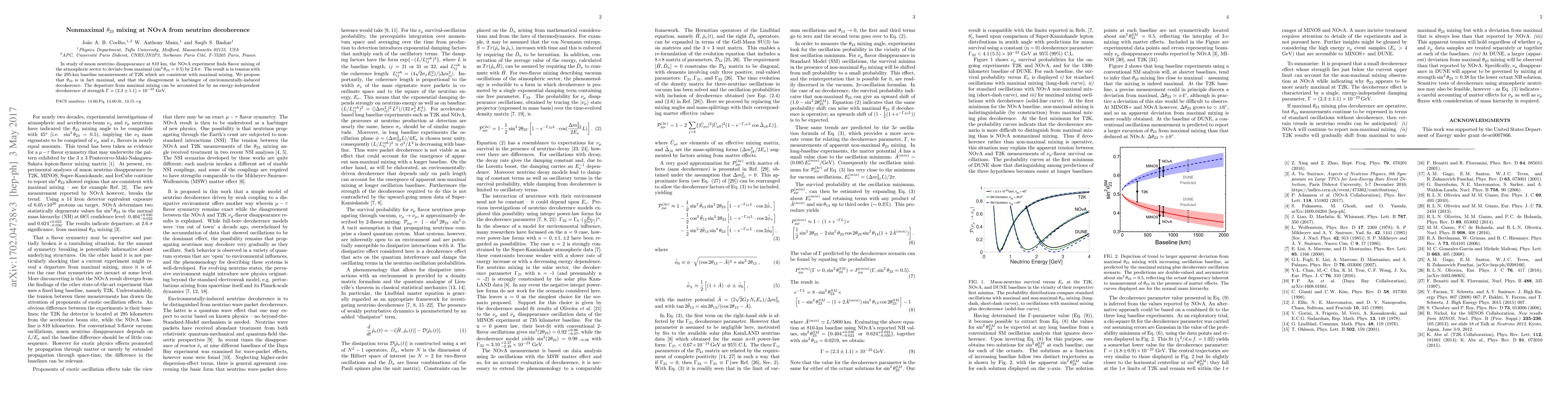 In study of muon neutrino disappearance at 810 km, the NOvA experiment finds flavor mixing of the atmospheric sector to deviate from maximal ($\sin^2\theta_{23} = 0.5$) by 2.6 $\sigma$. The result is in tension with the 295-km baseline measurements of T2K which are consistent with maximal mixing. We propose that $\theta_{23}$ is in fact maximal, and that the disagreement is harbinger of environmentally-induced decoherence. The departure from maximal mixing can be accounted for by an energy-independent decoherence of strength $\Gamma = (2.3 \pm 1.1) \times 10^{-23}$ GeV.