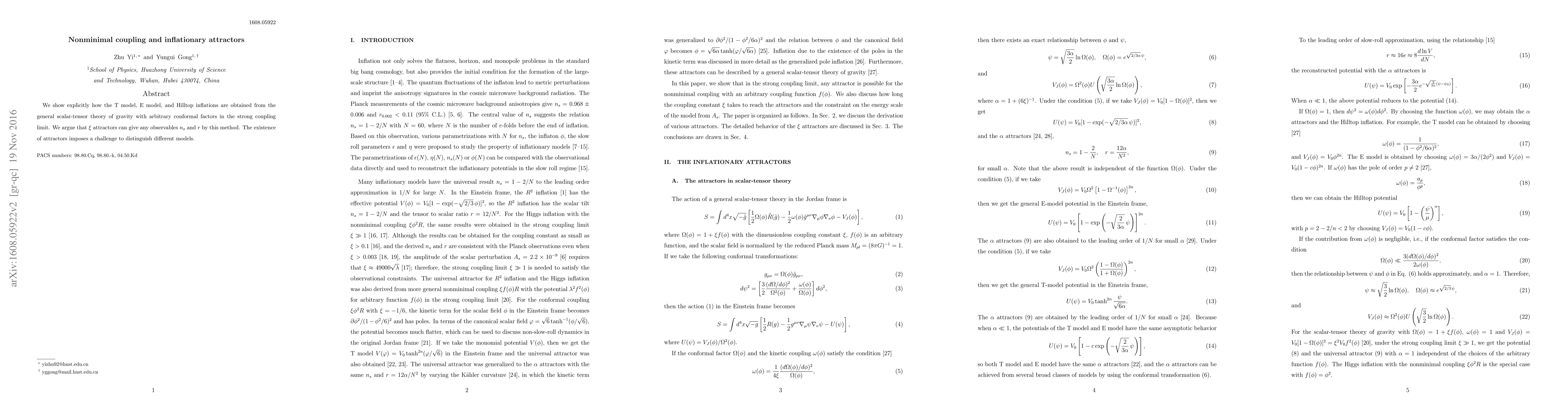 We show explicitly how the T model, E model, and Hilltop inflations are obtained from the general scalar-tensor theory of gravity with arbitrary conformal factors in the strong coupling limit. We argue that $\xi$ attractors can give any observables $n_s$ and $r$ by this method. The existence of attractors imposes a challenge to distinguish different models.