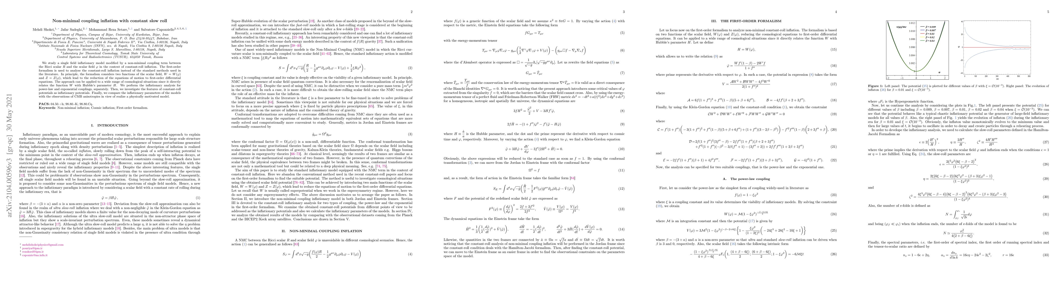 This paper explores a single-field inflationary model with a non-minimal coupling between the Ricci scalar and the scalar field, focusing on constant-roll inflation. It employs a first-order formalism to analyze the model, comparing power-law and exponential couplings, and assesses the model's inflationary parameters against CMB observations.