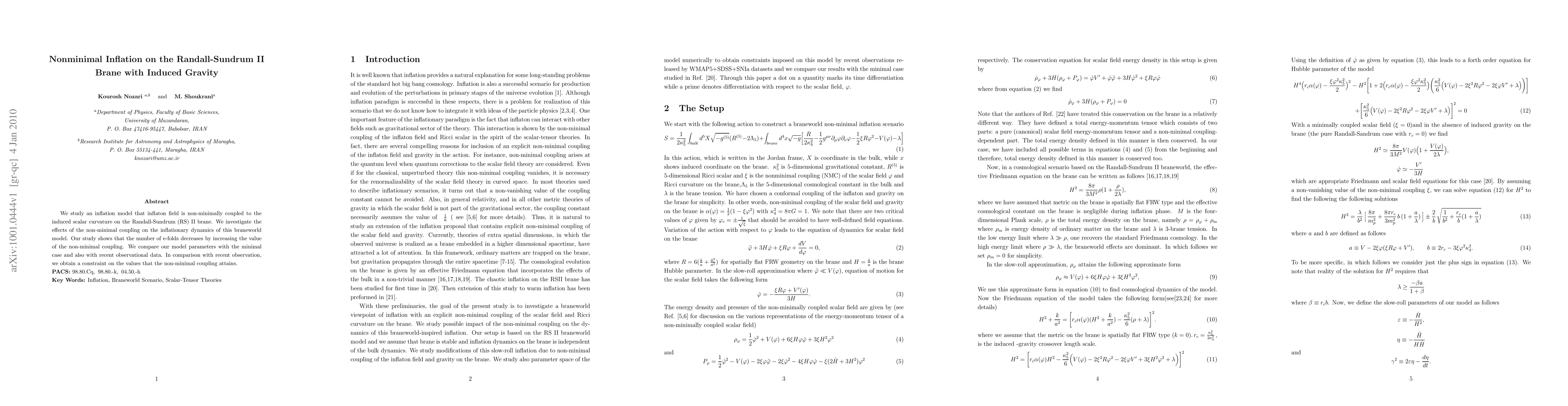 This paper explores an inflationary model where the inflaton field is non-minimally coupled to the induced scalar curvature on the Randall-Sundrum II brane. The study finds that increasing the non-minimal coupling reduces the number of e-folds and provides constraints on its values based on observational data.