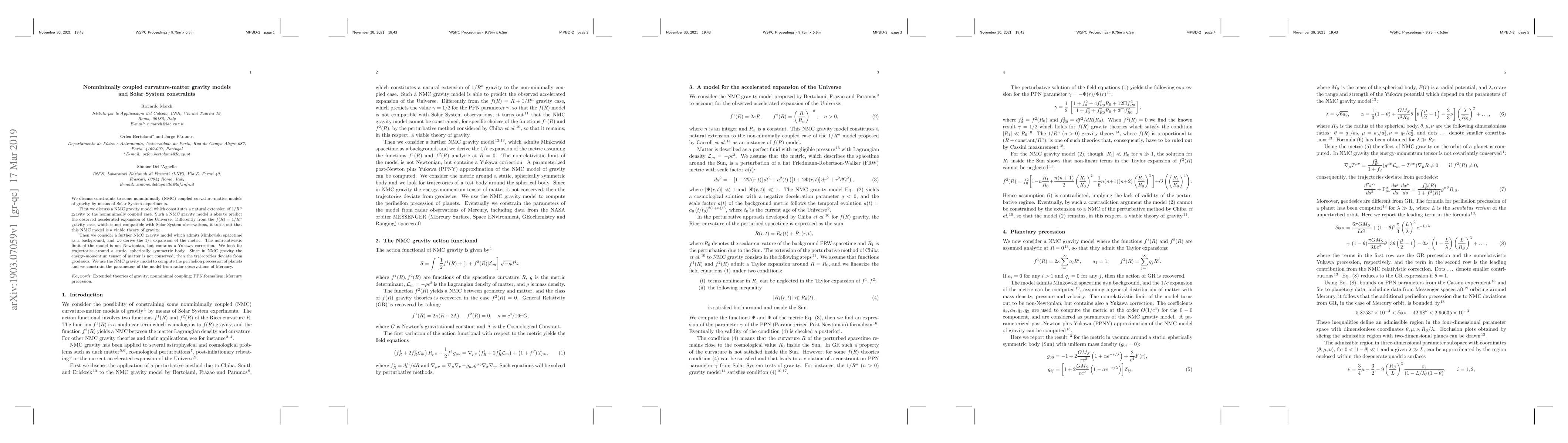 This paper explores nonminimally coupled (NMC) curvature-matter gravity models, demonstrating their viability for predicting the accelerated expansion of the Universe via Solar System experiments. The study constrains these models by analyzing the perihelion precession of planets, particularly Mercury, using radar observations.