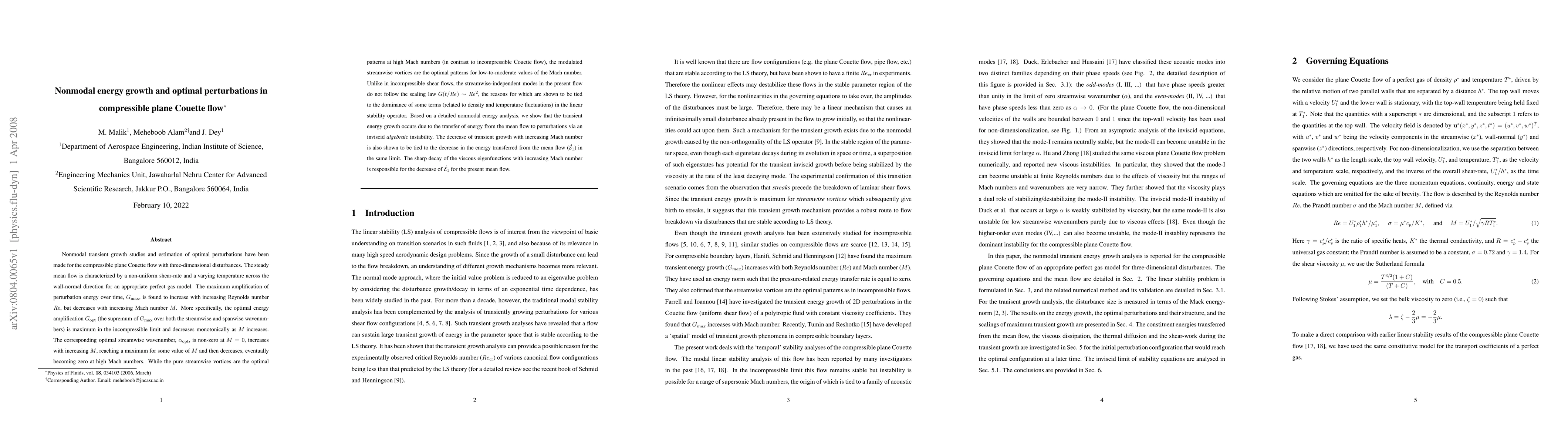 The work presents a unique combination of analytical and numerical methods to investigate the stability of compressible flow, providing new insights into transition phenomena