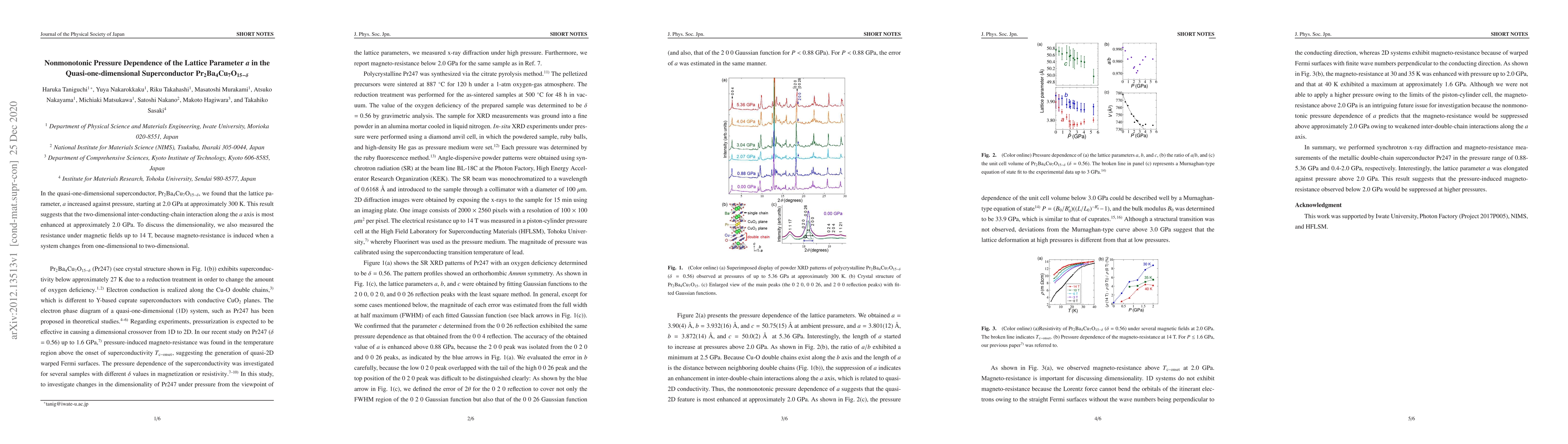 This study reveals a nonmonotonic pressure dependence of the lattice parameter $a$ in the quasi-one-dimensional superconductor Pr$_2$Ba$_4$Cu$_7$O$_{15-\delta}$, showing an increase starting at 2.0 GPa around 300 K, indicating enhanced two-dimensional inter-conducting-chain interaction at this pressure. The research also explores dimensionality through resistance measurements under magnetic fields up to 14 T.