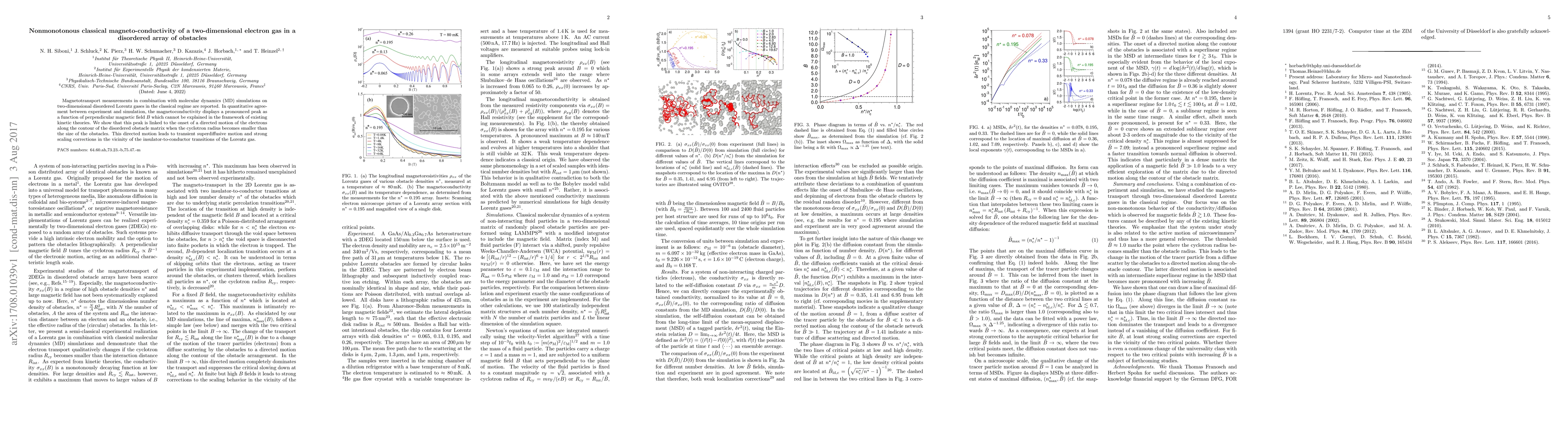 Magnetotransport measurements in combination with molecular dynamics (MD) simulations on two-dimensional disordered Lorentz gases in the classical regime are reported. In quantitative agreement between experiment and simulation, the magnetoconductivity displays a pronounced peak as a function of perpendicular magnetic field $B$ which cannot be explained in the framework of existing kinetic theories. We show that this peak is linked to the onset of a directed motion of the electrons along the contour of the disordered obstacle matrix when the cyclotron radius becomes smaller than the size of the obstacles. This directed motion leads to transient superdiffusive motion and strong scaling corrections in the vicinity of the insulator-to-conductor transitions of the Lorentz gas.