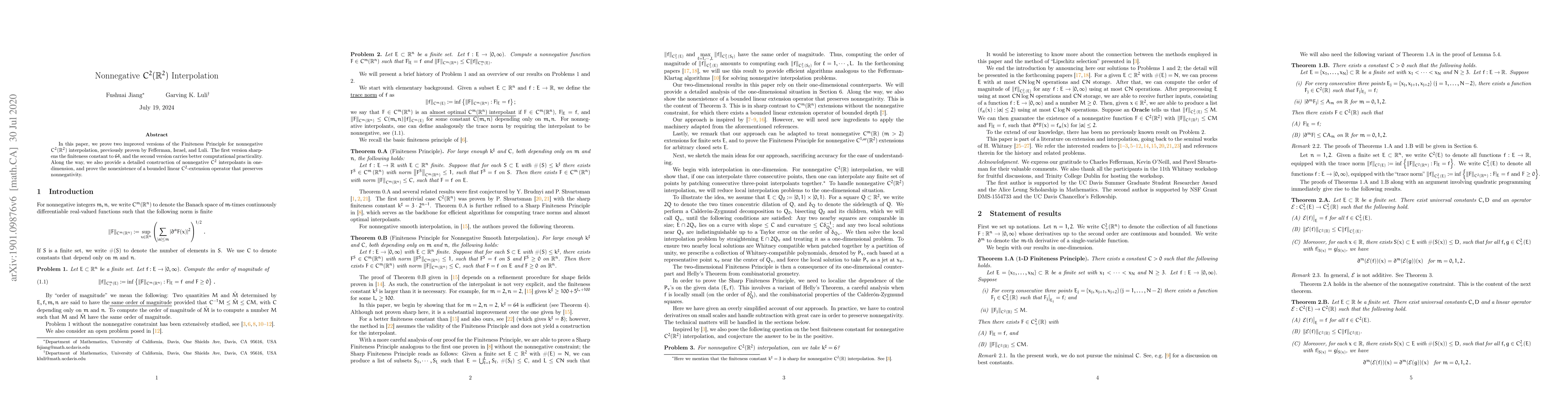 This paper improves the Finiteness Principle for nonnegative $C^2(\mathbb{R}^2)$ interpolation, refining the finiteness constant to $64$ and enhancing computational practicality. It also constructs nonnegative $C^2$ interpolants in one dimension and proves the nonexistence of a bounded linear extension operator preserving nonnegativity.