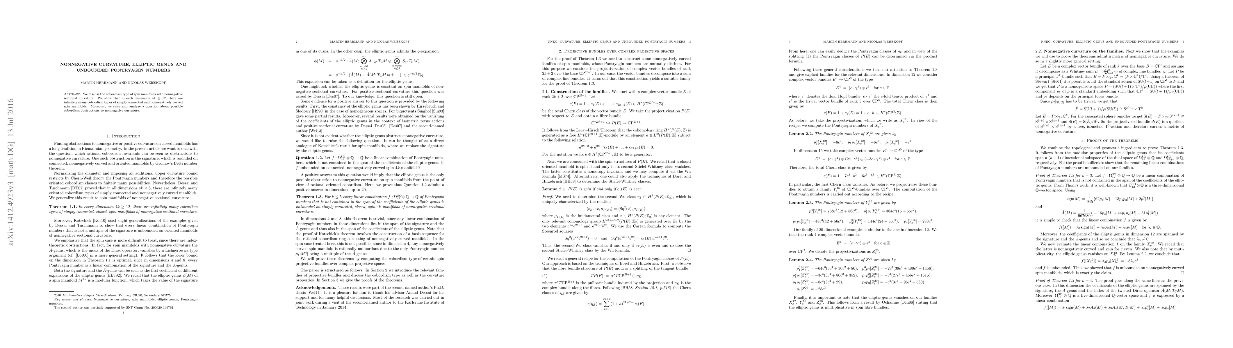 Summary: This paper explores the cobordism types of spin manifolds with nonnegative sectional curvature, demonstrating the existence of infinitely many such cobordism types in dimensions $4k \geq 12$ and investigates potential cobordism obstructions to nonnegative curvature.
