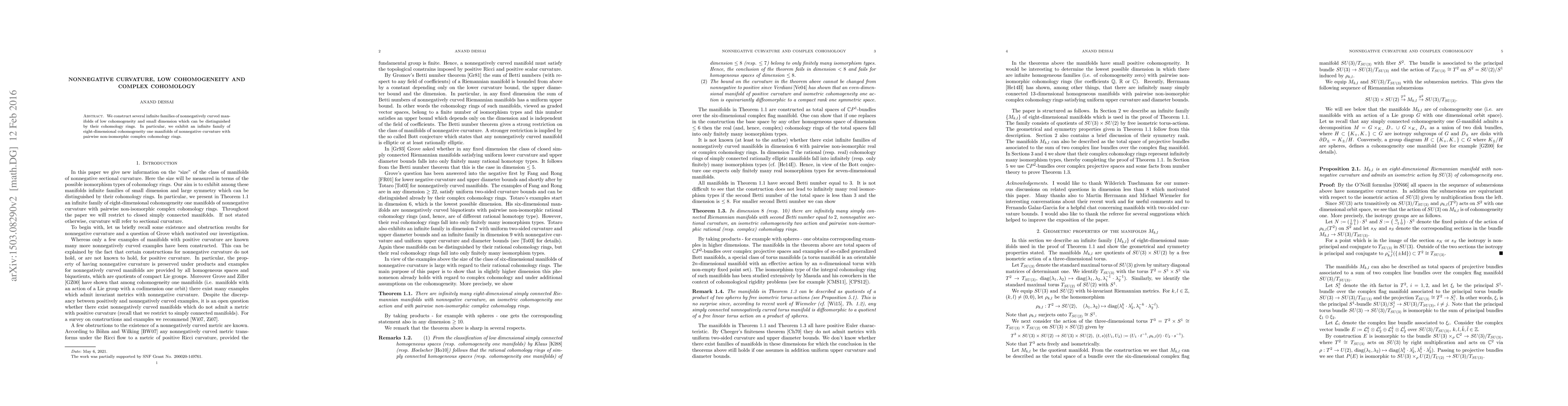 Summary: The paper constructs infinite families of eight-dimensional nonnegatively curved manifolds with cohomogeneity one and distinct complex cohomology rings, demonstrating their non-isomorphism through their cohomology structures.