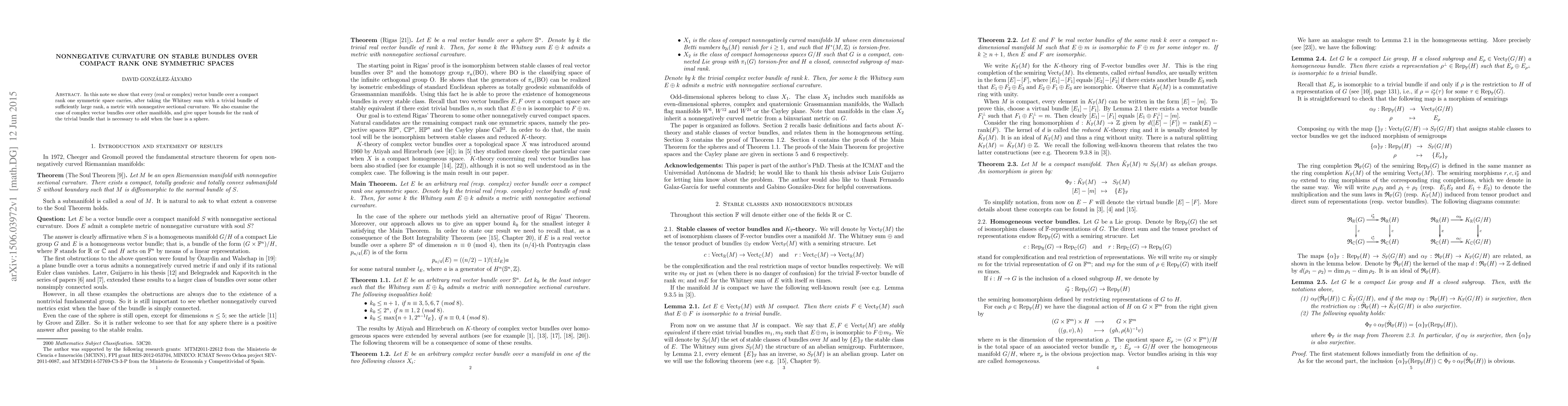 This paper demonstrates that stable vector bundles over compact rank one symmetric spaces can achieve nonnegative sectional curvature after summing with a sufficiently high-rank trivial bundle. It also provides upper bounds for the necessary rank addition for complex vector bundles over spheres.