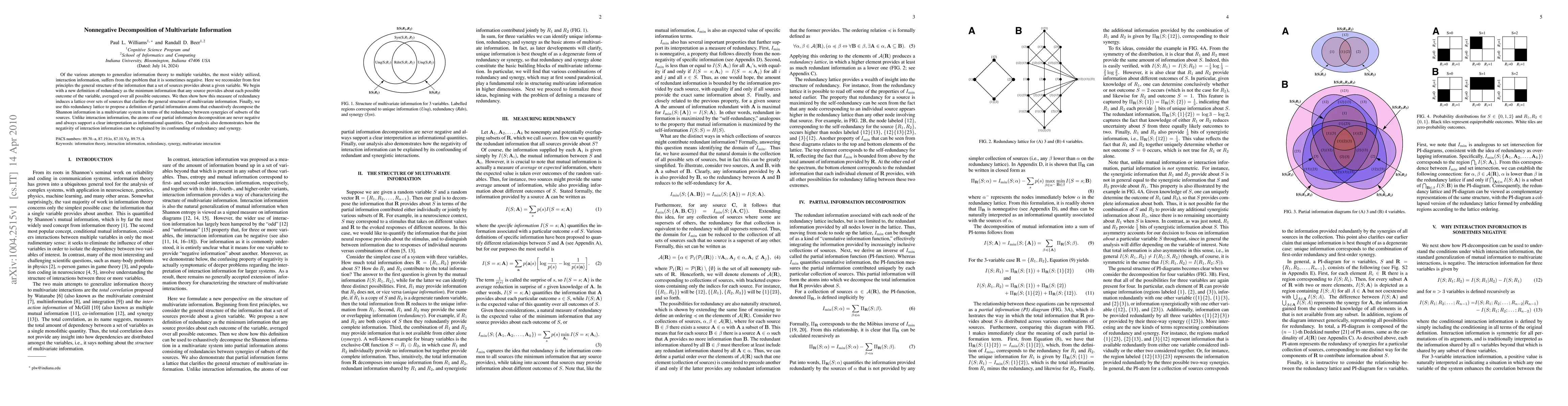 This paper proposes a nonnegative decomposition of multivariate information, introducing a new definition of redundancy and a lattice structure that clarifies the information provided by multiple sources. Unlike interaction information, the proposed partial information atoms are always nonnegative and provide a clear interpretation of the information structure.