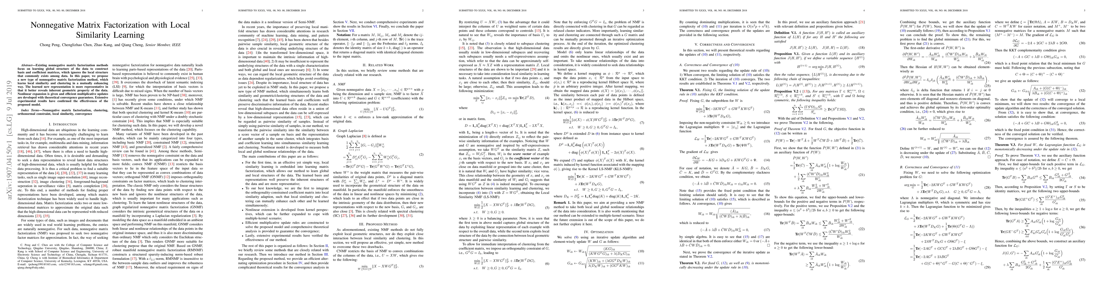 This paper proposes a novel nonnegative matrix factorization method that incorporates local similarity learning, enhancing both local clustering and global structure. The method achieves better data representation by revealing inherent geometric properties, with efficient multiplicative updates and theoretical convergence guarantees, as validated by experimental results.