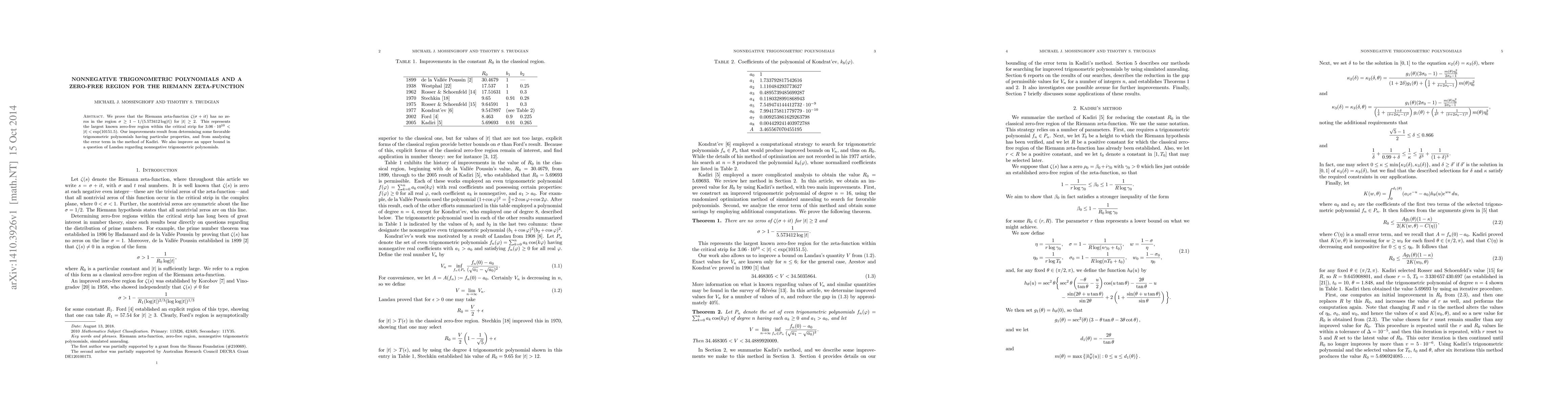 This research establishes a larger zero-free region for the Riemann zeta-function than previously known, using specific trigonometric polynomials and error term analysis. It also improves an upper bound in Landau's question about nonnegative trigonometric polynomials.