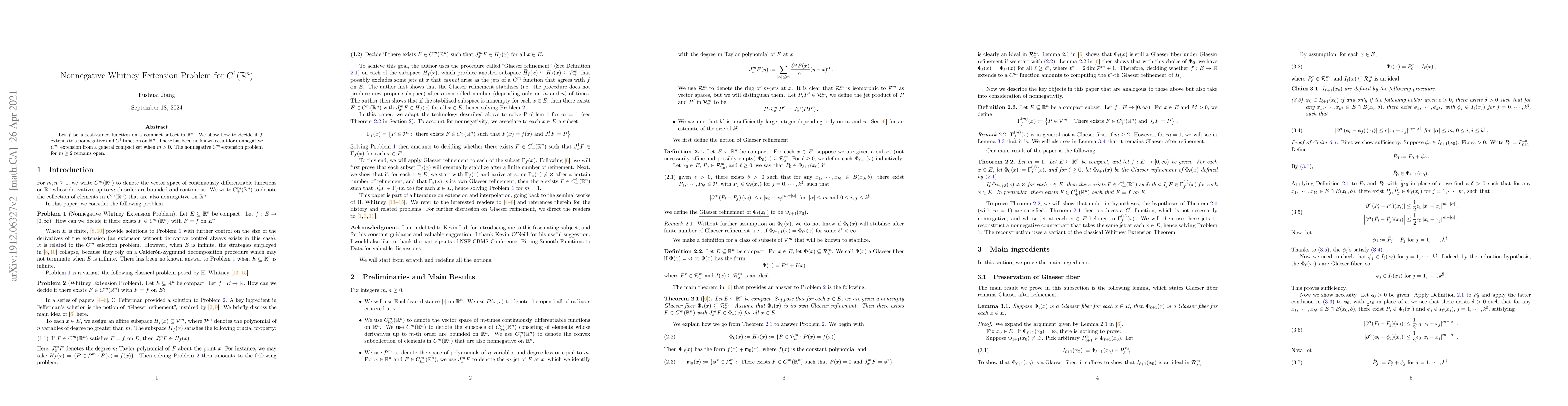 This research paper proposes a method to determine if a real-valued $C^1$ function defined on a compact subset of $\mathbb{R}^n$ can be extended to a nonnegative $C^1$ function on $\mathbb{R}^n$, addressing a previously unresolved problem in nonnegative function extension. The extension problem for higher-order derivatives ($m \geq 2$) remains unsolved.
