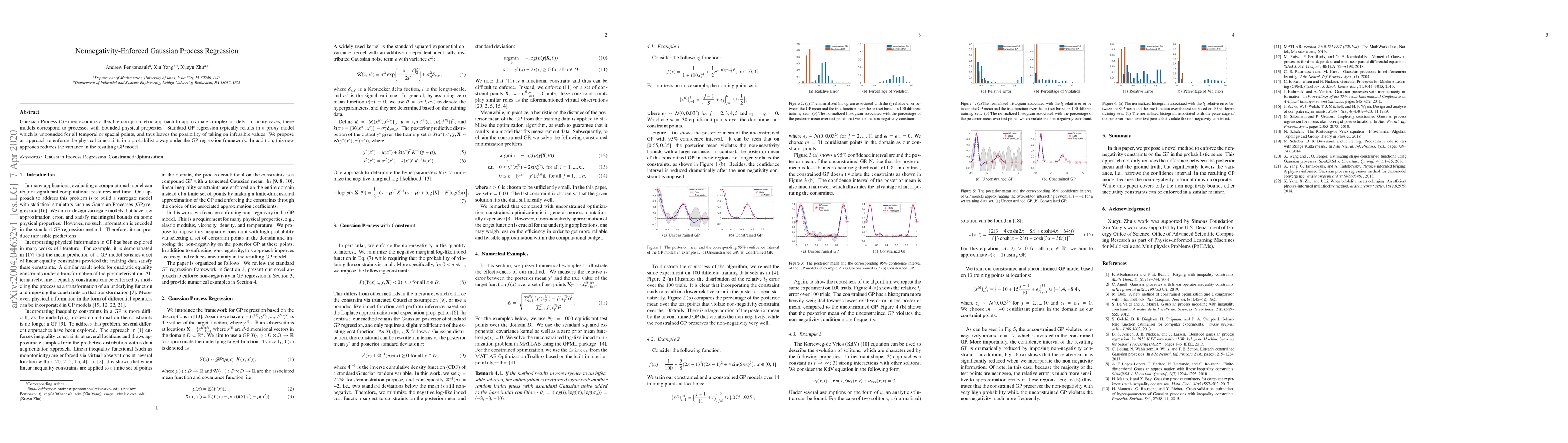 Summary: This paper introduces a method for enforcing nonnegativity constraints in Gaussian Process regression to ensure physically feasible outputs, addressing the issue of unbounded predictions in standard GP models, and also reduces the variance of the resulting model.