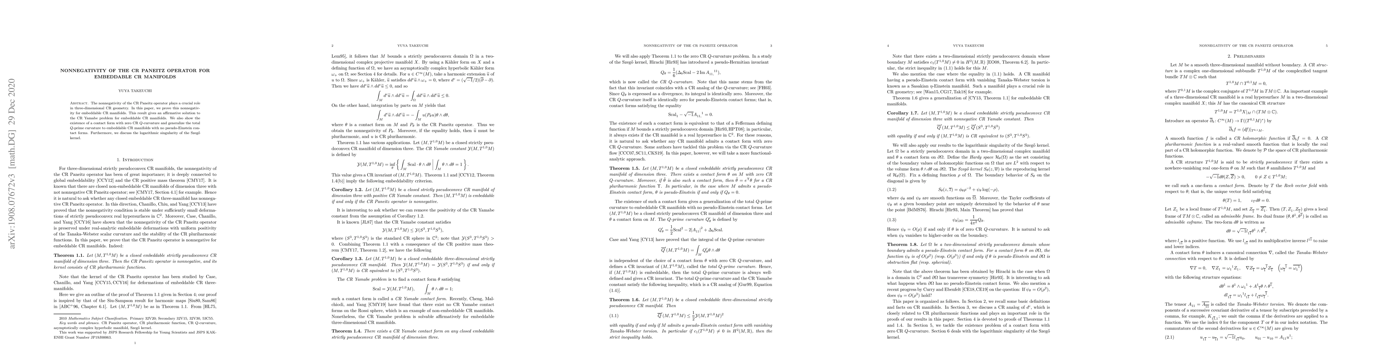 This paper proves the nonnegativity of the CR Paneitz operator for embeddable CR manifolds, providing a solution to the CR Yamabe problem and establishing the existence of a contact form with zero CR $Q$-curvature. It also generalizes the total $Q$-prime curvature to these manifolds and examines the logarithmic singularity of the Szegő kernel.