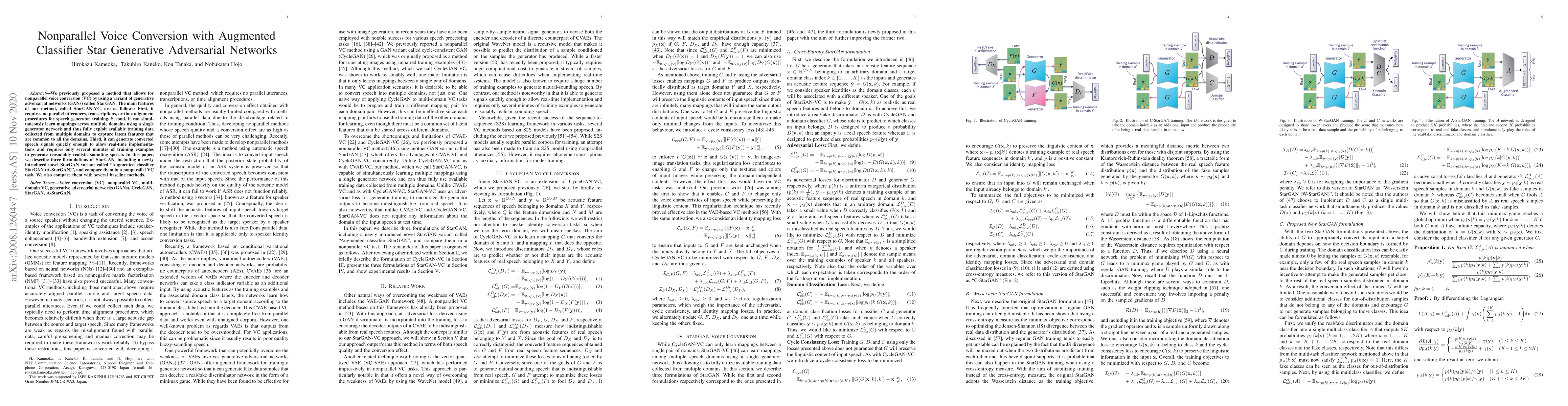 This paper proposes a nonparallel voice conversion method using StarGAN variants, including a new "Augmented classifier StarGAN (A-StarGAN)", that requires no parallel data and can learn mappings across multiple domains. The method is compared with baselines and demonstrates efficient training and realistic speech generation.