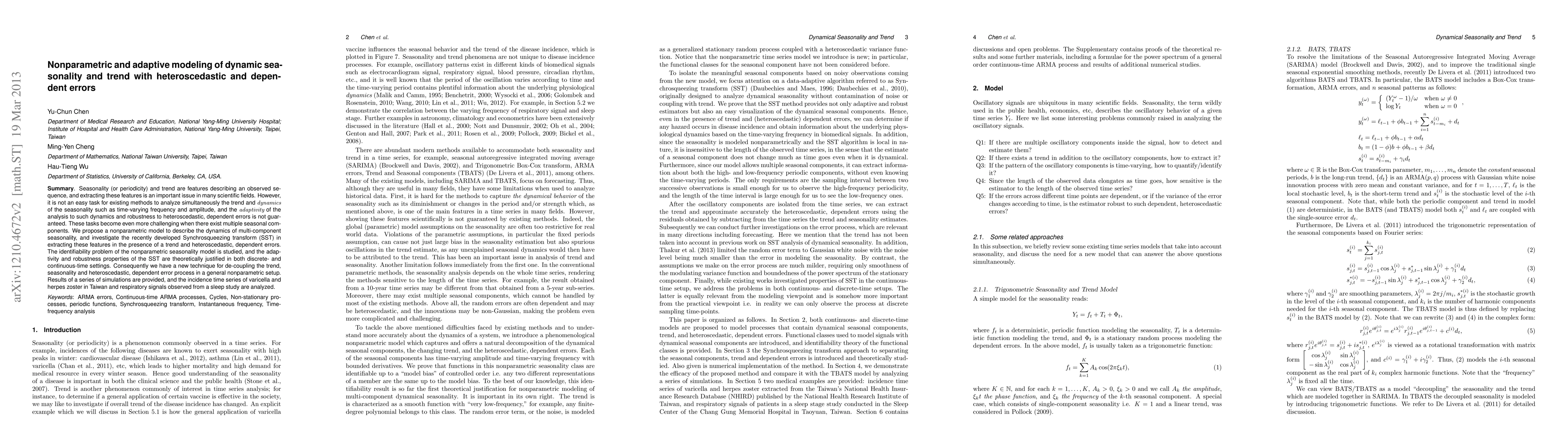A new nonparametric model is proposed to analyze seasonality and trend in time series data with heteroscedastic and dependent errors, using the Synchrosqueezing transform to extract features.